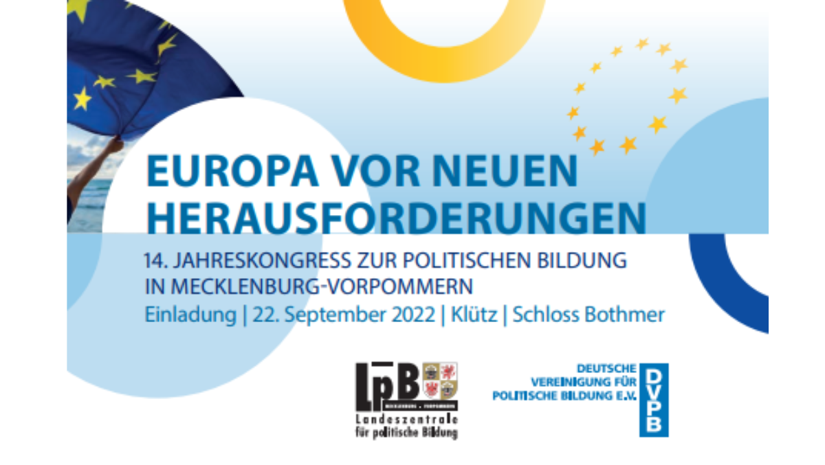 Der 14. Jahreskongress zur politischen Bildung in Mecklenburg-Vorpommern wird sich diesen Fragen zur Zukunft der Europäischen Union und Europas annähern und sich mit den Möglichkeiten und Grenzen politischer Bildung in diesem Feld befassen.
