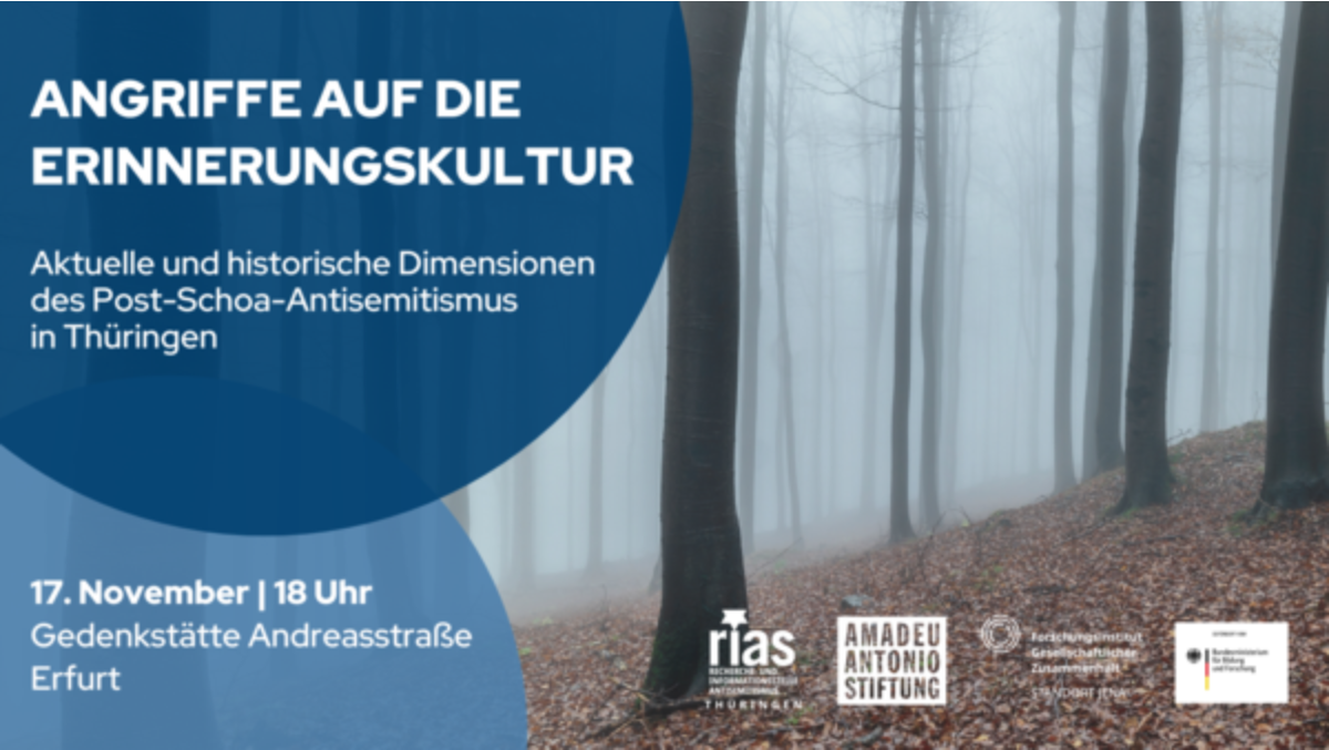 Die Veranstaltung ist eine Kooperation von RIAS Thüringen – Recherche- und Informationsstelle Antisemitismus und dem Forschungsprojekt Relativierung, Revisionismus, Wiederkehr. Die Abwehr der Erinnerung an den Nationalsozialismus seit 1990 am FGZ-Standort Jena.