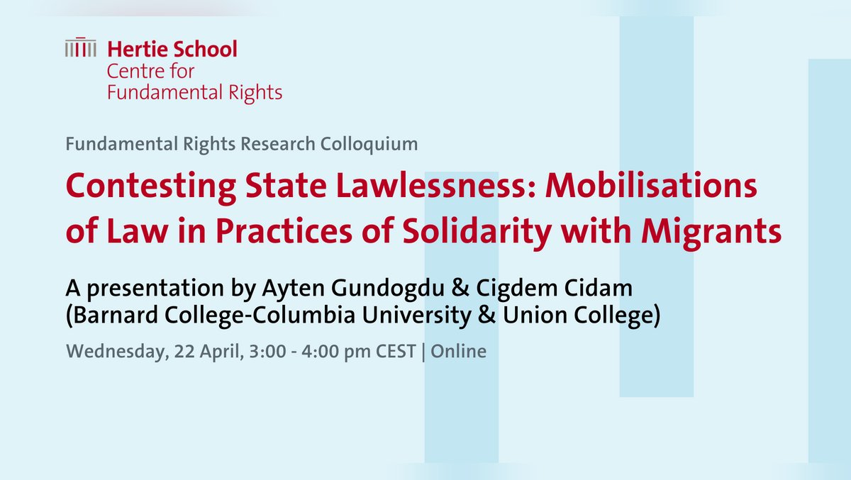 A presentation by Ayten Gundogdu (Barnard College-Columbia University) & Cigdem Cidam (Union College). This event is part of the Fundamental Rights Research Colloquium under the „Transforming Migration Governance: Towards a Solidarity-based Approach“ cluster hosted by the Centre for Fundamental Rights.
