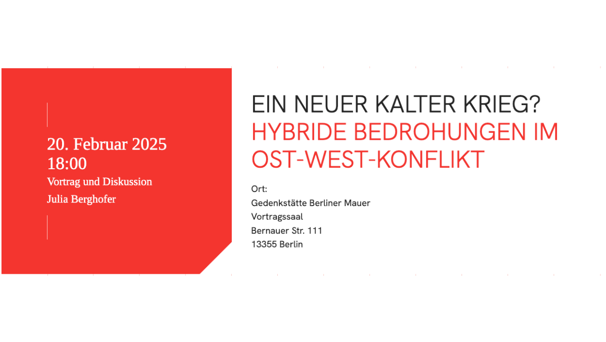 Seit dem russischen Angriffskrieg gegen die Ukraine wird ein neuer Ost-West-Konflikt konstatiert. Gibt es einen neuen Kalten Krieg – oder hat der alte nie geendet? Diese Frage wird gegenwärtig viel diskutiert. Dabei fällt jüngst immer öfter das Stichwort Hybrid Warfare, worunter die koordinierte Konfliktführung mit „irregulären“, nichtmilitärischen Mitteln bezeichnet wird. Wenn der Begriff der hybriden Bedrohungen auch jüngeren Datums ist, so lassen sich doch Muster aus dem Kalten Krieg darunter fassen. Bereits dieser längste globale Konflikt des 20. Jahrhunderts war eine politisch-ideologische, kulturelle, wirtschaftliche und nachrichtendienstliche Auseinandersetzung, die mit Fake News, Propaganda, Sanktionen, Spionage und Sabotage bis hin zu Entführungen und Tötungen geführt wurde. Vortrag und Diskussion widmen sich Kontinuitäten und Unterschieden und fragen nach Möglichkeiten der Konfliktreduzierung.