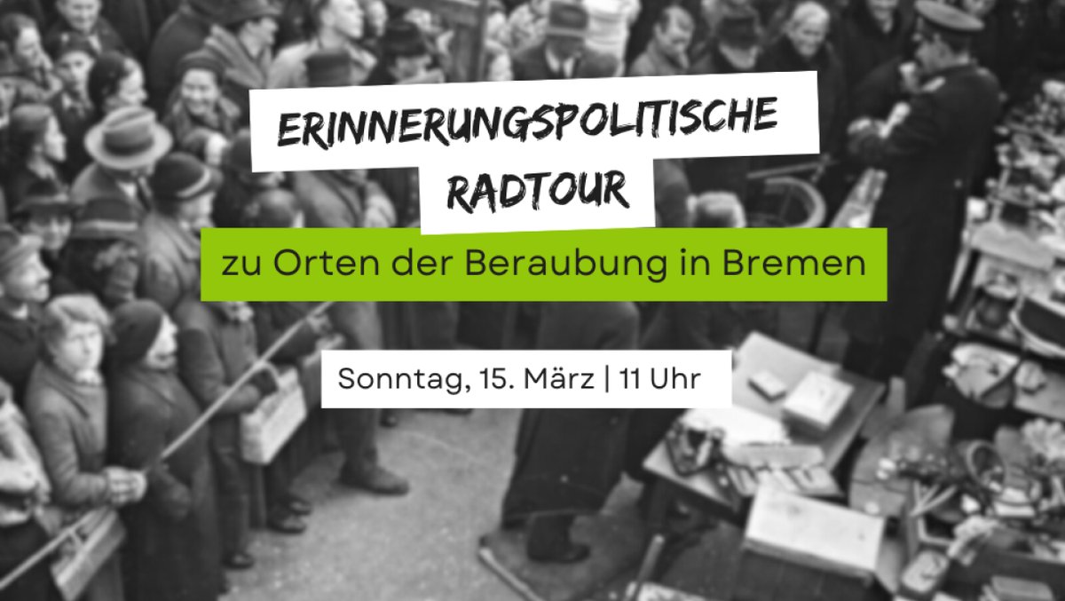 Am Sonntag, den 15. März 2026, findet erneut eine erinnerungspolitische Radtour zu NS-Raub-relevanten Orten in Bremen statt. Start ist um 11 Uhr am Finanzamt Bremen, Ende gegen 14 Uhr an der Tiefer.