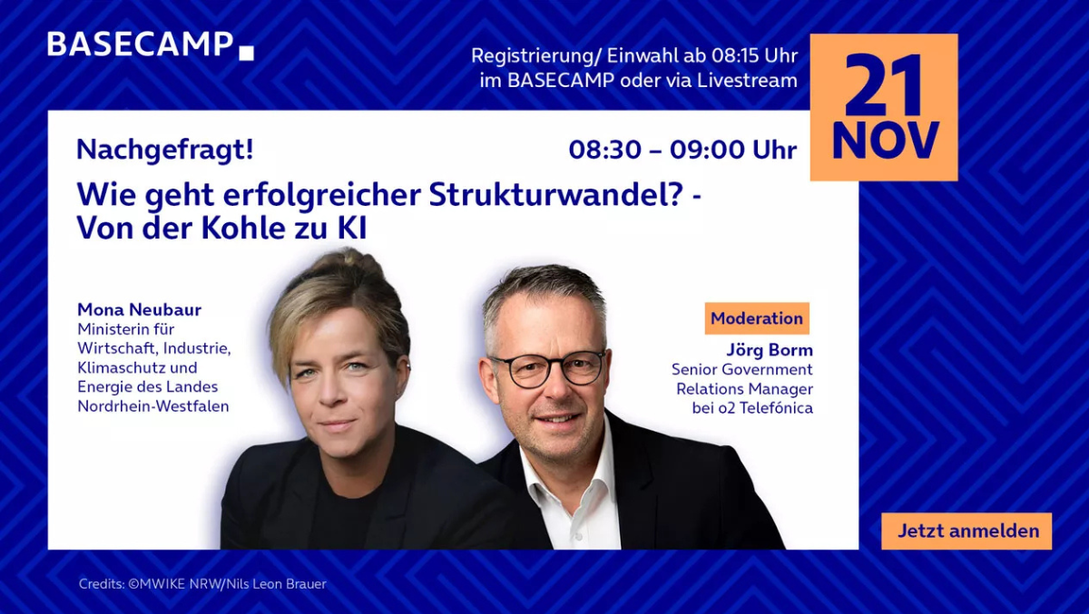 Der Strukturwandel stellt viele Regionen vor große Herausforderungen – besonders jene, die über Jahrzehnte von fossilen Industrien geprägt waren. In unserer nächsten Ausgabe von „Nachgefragt!“ sprechen wir am 21. November mit Mona Neubaur, stellvertretende Ministerpräsidentin und Ministerin für Wirtschaft, Industrie, Klimaschutz und Energie des Landes Nordrhein-Westfalen, über die Frage: Wie gelingt der Übergang von traditionellen Industrien zu zukunftsfähigen Technologien?